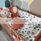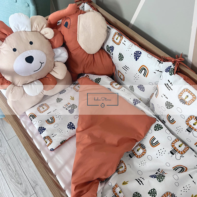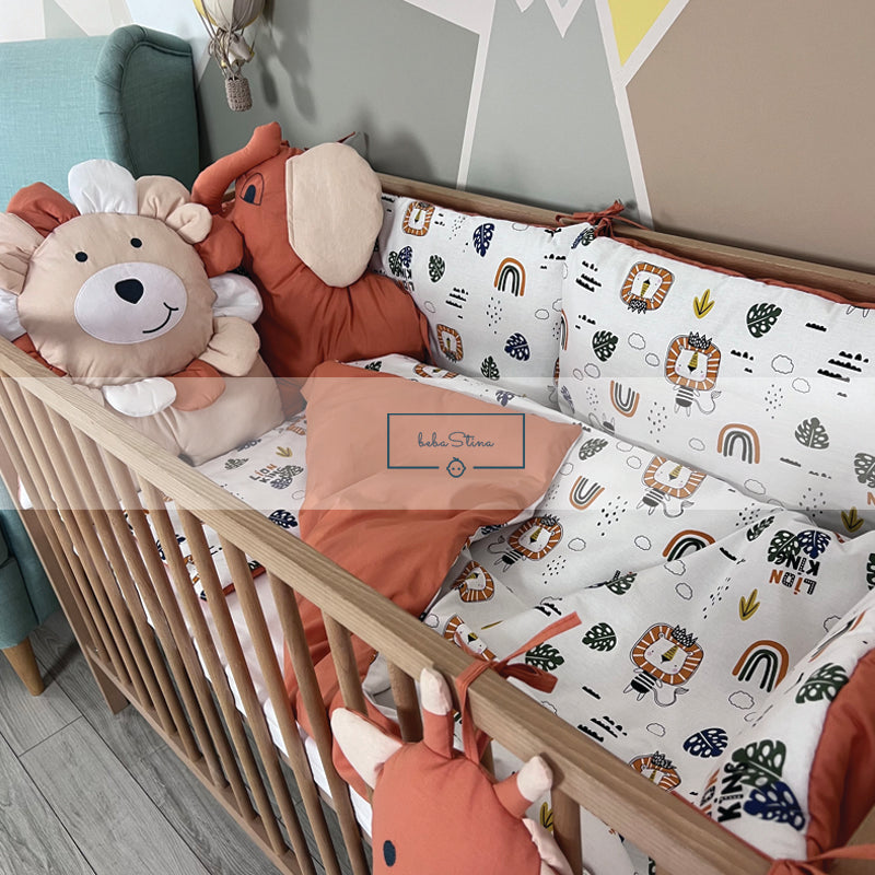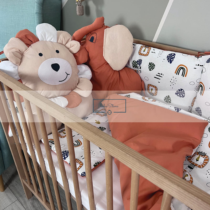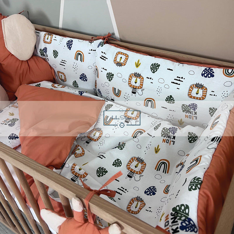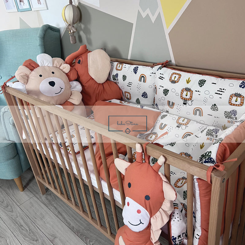 Ограждение кроватки и детское постельное белье подходят для стандартной детской кроватки с матрасом размером 120x60 см.